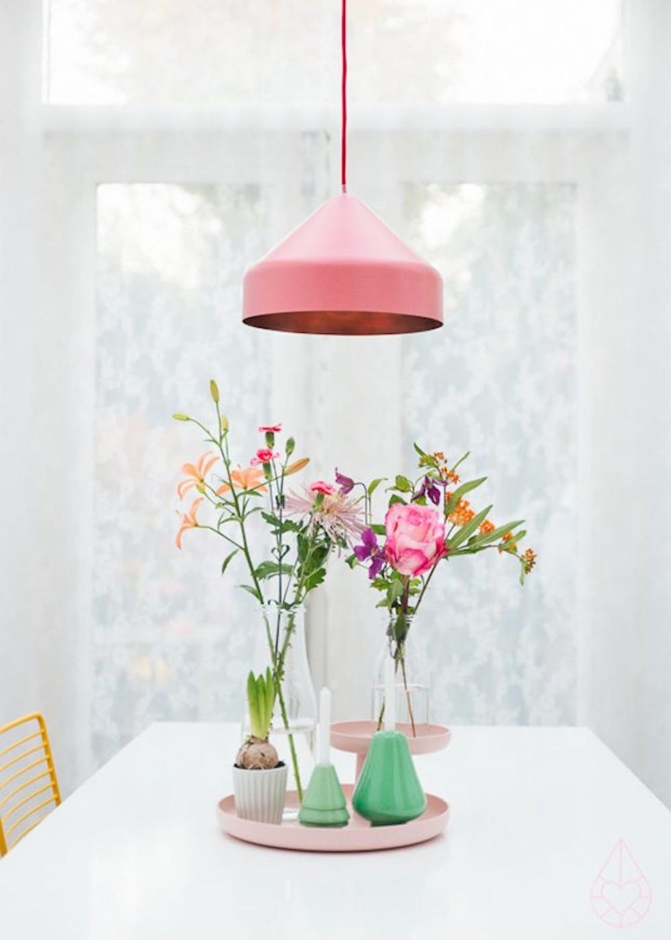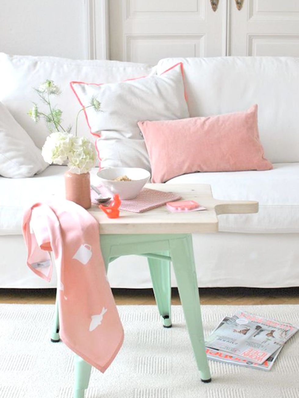 10. Candy Coated: You know what goes great with candy-coated colors? *More* candy-coated colors. Add some sunshine yellow and sky blue to the trendy duo and make every day a good day. (via Apartment Therapy)